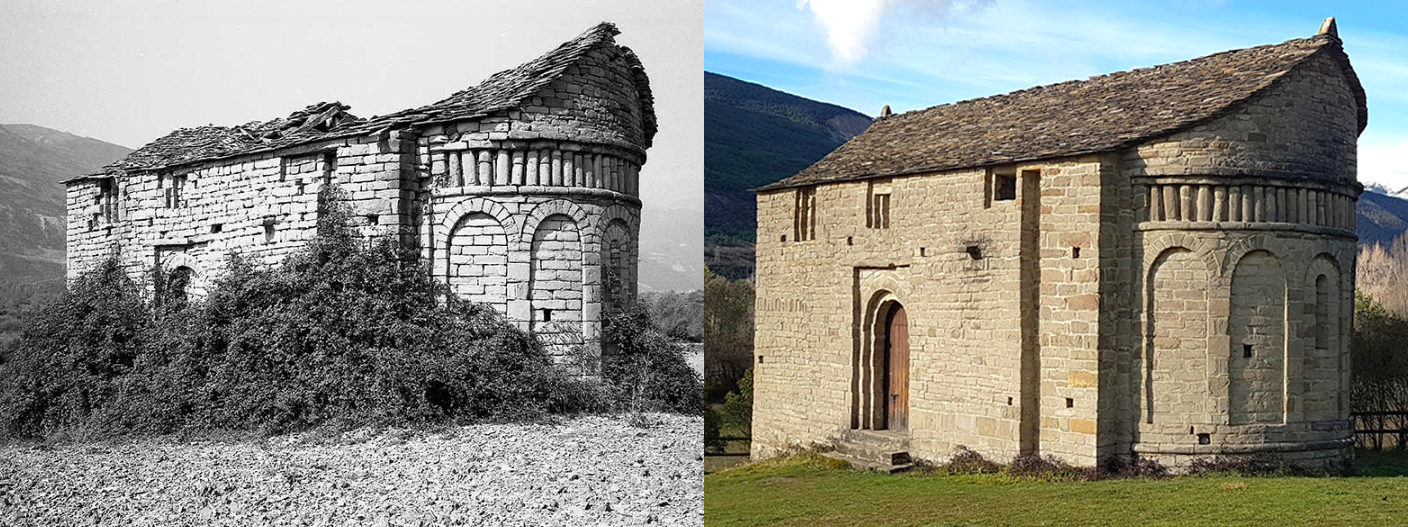 Las iglesias de Serrablo (Huesca) forman uno de los conjuntos mozárabes o protorrománicos más singulares de nuestro país. Se trata de una serie de templos —suele hablarse de unos 15 edificios que pueden visitarse en una ruta en uno o dos días— que están situados entre las localidades de Sabiñánigo y Biescas, en el valle oscense del Alto Gállego. Quizá hoy no hablaríamos de ellas, de no ser por que un investigador, Rafael Sánchez Ventura, las puso en el mapa en el verano de 1922, es decir, hace exactamente un siglo. Entonces, el estudioso se encontró un repertorio de iglesias que compartían una serie de elementos constructivos comunes —como el empleo del arco de herradura y sus elevadas torres con influencias árabes (en el caso de San Pedro de Lárrede, su torre se erige simulando un clásico mirarete—, que se encontraban, muchas de ellas, al borde de la ruina.