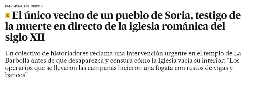El único vecino de un pueblo de Soria, testigo de la muerte en directo de la iglesia románica del siglo XII (24-01-2024)